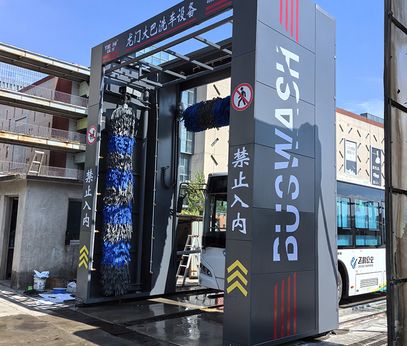 可以根據需要,選擇單程清洗或往復清洗功能,并可選擇清洗過程中是否使用頂刷清洗車頭、車尾或車頂。清洗后的水經過處理后循環使用。具有自動與手動控制功能并能選擇是否使用清洗劑清洗,同時具有多項安全保護功能。(雙刷結構,頂部由高壓水沖洗)