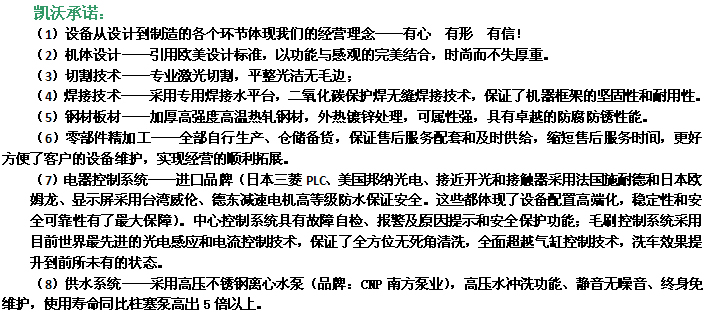 我們是服務(wù)為一體的汽車清洗設(shè)設(shè)備及后服務(wù)企業(yè),自動(dòng)洗車機(jī)涵蓋了轎車、商中國(guó)溫州凱沃是集研發(fā)、銷售、種環(huán)衛(wèi)車等不同車車型種類的清洗設(shè)備,產(chǎn)品覆蓋政府環(huán)衛(wèi)部門各晶汽車服務(wù)經(jīng)經(jīng)營(yíng)企業(yè)等。。您完全可以根據(jù)自己的投資能力和