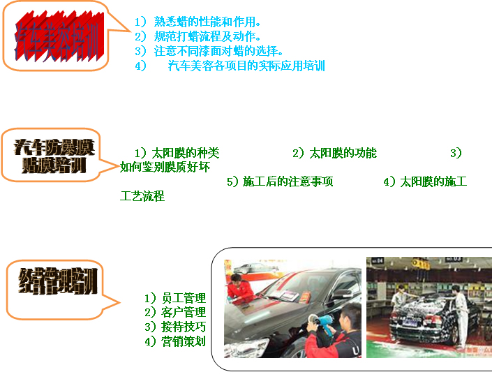 技術(shù)——始終將汽車美容養(yǎng)護(hù)各項(xiàng)新項(xiàng)目、新業(yè)務(wù)、新技術(shù)積極主動(dòng)地向合作客戶推廣。